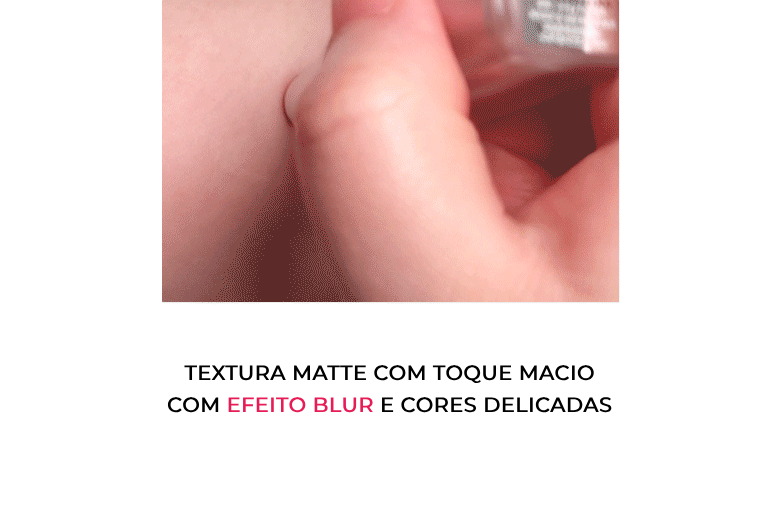 Dimeticona, Crospolímero de Vinil Dimeticona/Meticona Silsesquioxano, Caprilato de Propilheptila, Malato de Diisoestearila, Crospolímero de Dimeticona/Vinil Dimeticona, Carbonato de Cálcio, Cera Sintética, Adipato de Dibutila, Polibuteno, Polimetilsilsesquioxano, Sílica, Poligliceril-2 Triisoestearato, Dióxido de Titânio (CI 77891), Cera de Candelila, Cera de Semente de Helianthus Annuus (Girassol), Isoestearato de Sorbitana, Laca Vermelha 7 (CI 15850), Óxidos de Ferro (CI 77491), Laca Amarela 6 (CI 15985), Poligliceril-2 Diisoestearato, Cera Microcristalina, Sebacato/Isopalmitato de Diglicerila, Triacetato de Tetraestearato de Sacarose, Hectorita de Disteardimônio, Citrato de Trietila, Tocoferol, fragrância, Blue 1 Lake (CI 42090), óxidos de ferro (CI 77499)