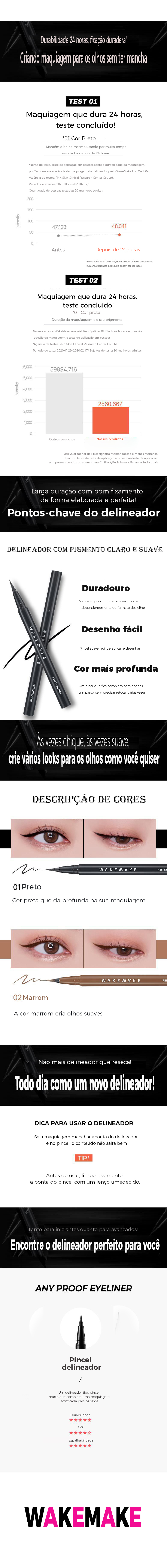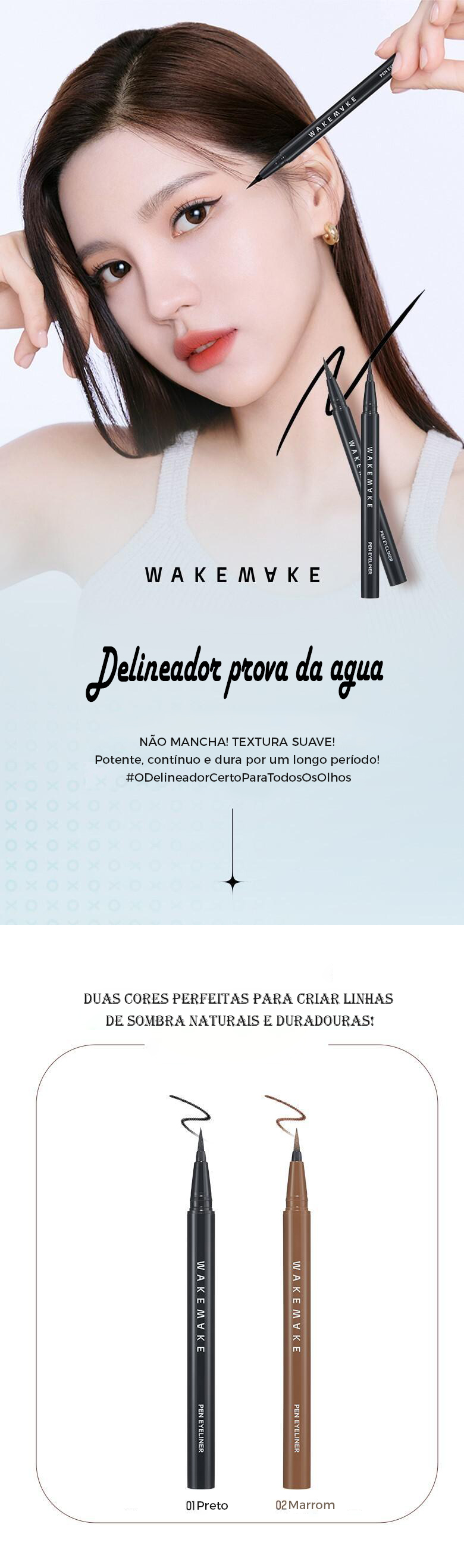 Agite bem antes de usar e, em seguida, aplique suavemente ao longo da linha dos cílios. Limpe a ponta do pincel com um lenço de papel antes de usar o produto para uma melhor aplicação.